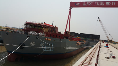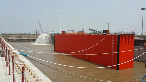 Meanwhile, the dock project of Hinxin Shipyard achieved its important launching node. By means of scientific construction scheme, Haihong spared no efforts to complete the primary structure of dock in 8 months, which created a record and eventually the dock was expected to deliver in 12 months. Currently, the “sinking workshop” was undertaken to adopt the fully enclosed and open structure, which is under the research and technologic exploitation phase. It was estimated that the dock will be developed into a core competence enabling day and night operations in all environments, which would be a major innovation in the shipping building industry.