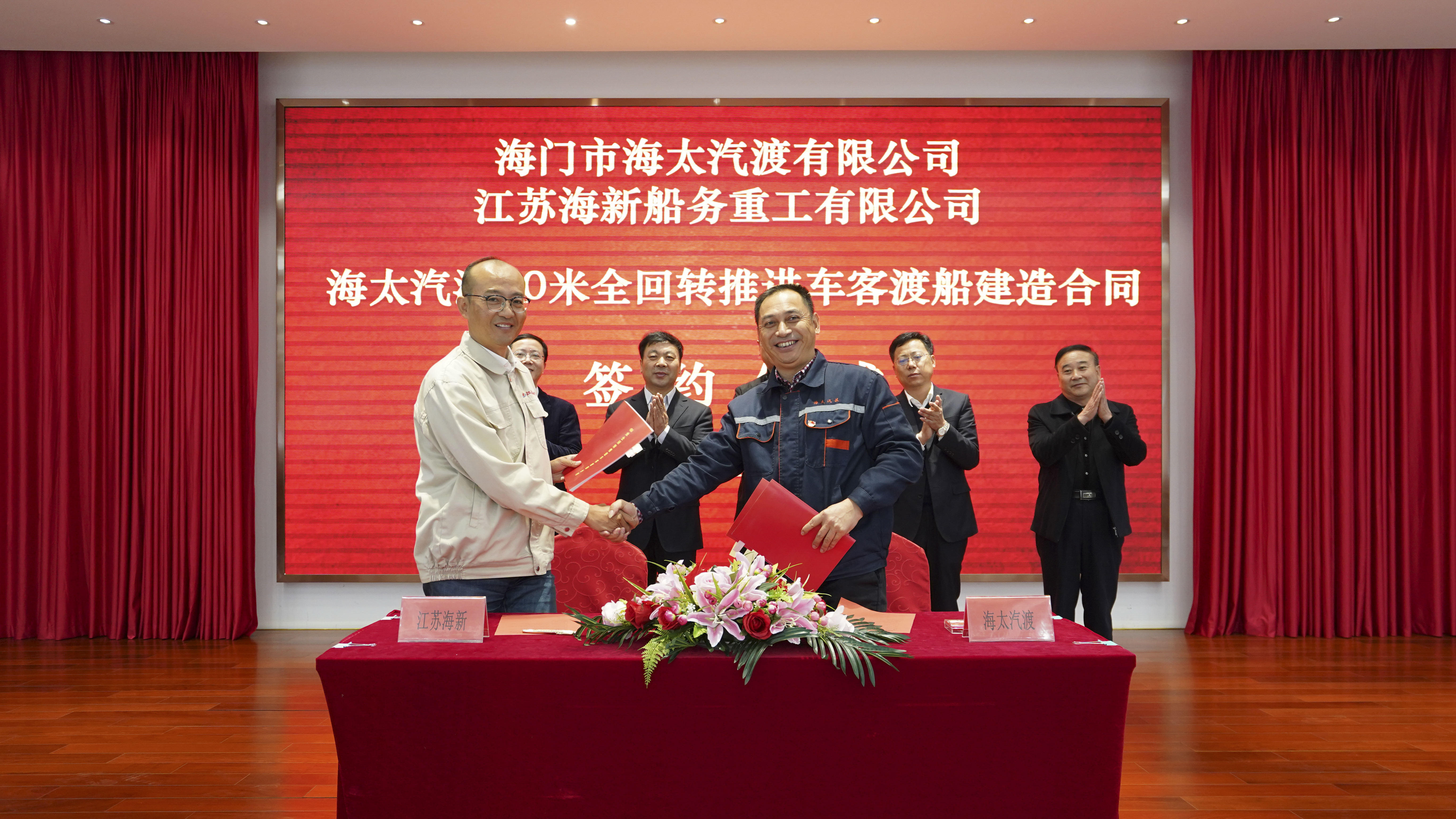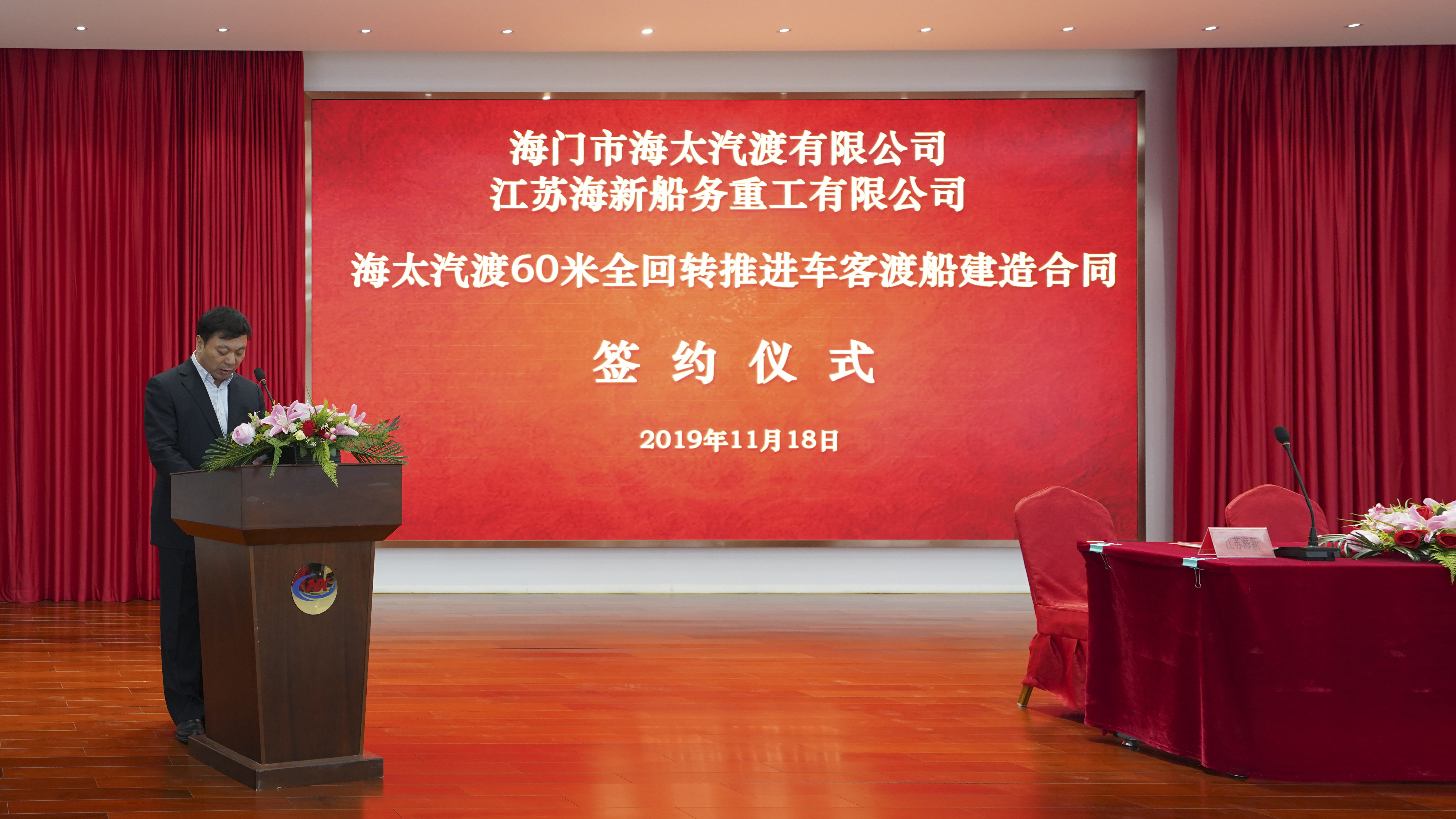 Jiangsu Haixin shipping heavy industry co., Ltd. held a signing ceremony for two 60-meter z-propeller car and passenger ferries with Haimen Haitai Car Ferry Co.,Ltd. on Nov.18, 2019.