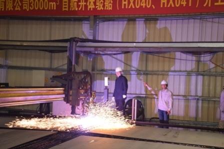 江蘇海新重工副董事長陳五洲主持開工儀式,江蘇海新重工孟咸宏董事長致歡迎詞。中國船級社江蘇分社張凱總經(jīng)理、中交上海航道局有限公司侯曉明董事長發(fā)表了熱情洋溢的講話。侯曉明董事長充分肯定了與江蘇海新重工前期合作的成果,展望了今后合作的前景,同時對本次建造的3000 m³自航開體駁寄予了殷切的希望。最后在公司聯(lián)合車間,上海交通建設(shè)總承包公司周顯田開啟了開工按鈕,儀式在焰火四射的熱烈氣氛中結(jié)束。