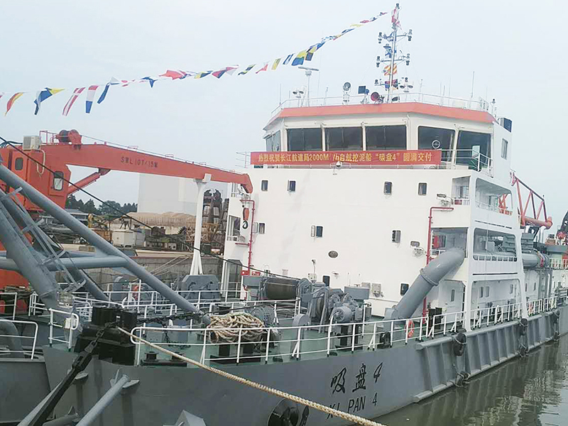 “吸盤4”輪由交通運輸部投資,中國船舶工業(yè)集團(tuán)公司第七〇八研究所設(shè)計,長江宜昌航道工程局用船。該船于2016年4月開工,2017年3月下水,2017年5月完成試航,2017年6月完成挖泥試驗。