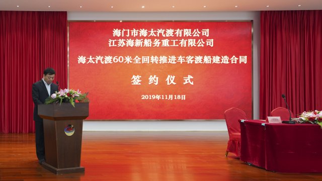 2019年11月18日上午,江蘇海新與海太汽渡在海新公司七樓會議室舉行了60米全回轉(zhuǎn)推進(jìn)車客渡船簽約儀式。 ...